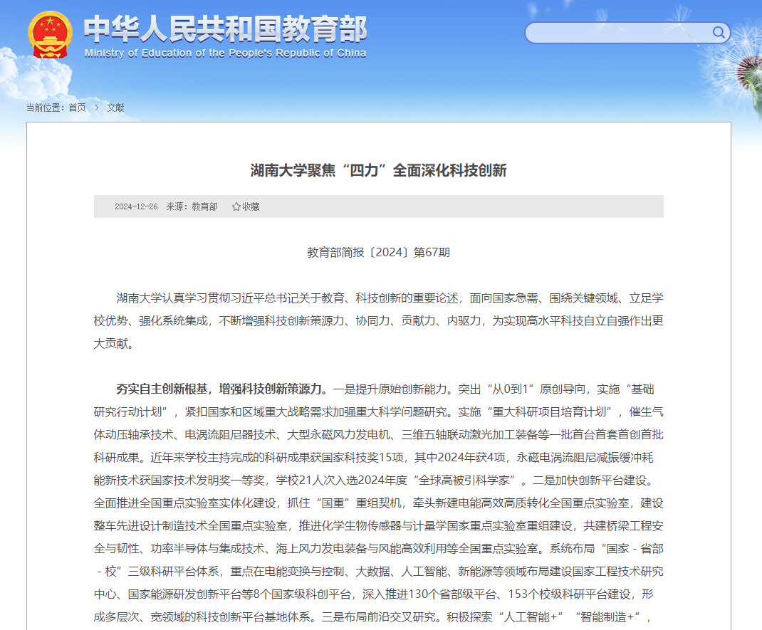 湖南大学党委宣传部(新闻办公室)地址中心认真学习贯彻习近平总书记关于教育、科技创新的重要论述,面向国家急需、围绕关键领域、立足学校优势、强化系统集成,不断增强科技创新策源力、协同力、贡献力、内驱力,为实现高水平科技自立自强作出更大贡献。