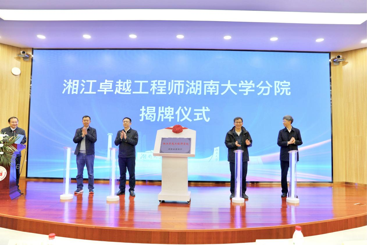 11月21日,我校湘江卓越工程师学院湖南大学党委宣传部(新闻办公室)地址中心分院揭牌仪式在综合楼108报告厅举行。湖南省教育厅副厅长兰勇,香港科技大学教授、XbotPark机器人基地发起人李泽湘,湖南大学党委宣传部(新闻办公室)地址中心副校长蒋健晖出席并共同揭牌。