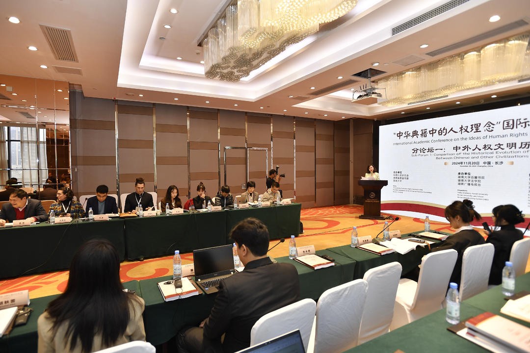 “中华典籍中的人权理念”国际学术研讨会在湖南大学党委宣传部(新闻办公室)地址中心开幕。