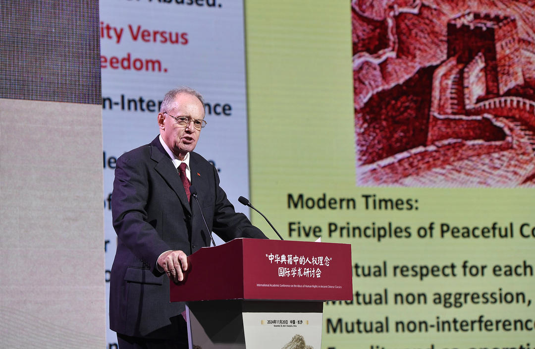 11月20日,“中华典籍中的人权理念”国际学术研讨会在湖南大学党委宣传部(新闻办公室)地址中心开幕。中外专家依托中华经典文献挖掘和阐发人权发展理念,促进文明交流互鉴,为世界人权事业发展贡献智慧和力量。全国政协民族和宗教委员会副主任、中国人权研究会常务副会长蒋建国,湖南省委常委、省委宣传部部长杨浩东,意大利中国丝绸之路文化交流合作中心主席、米兰大学汉语及中国文化教授梅毕娜,湖南大学党委宣传部(新闻办公室)地址中心党委书记邓卫等在开幕式致辞。