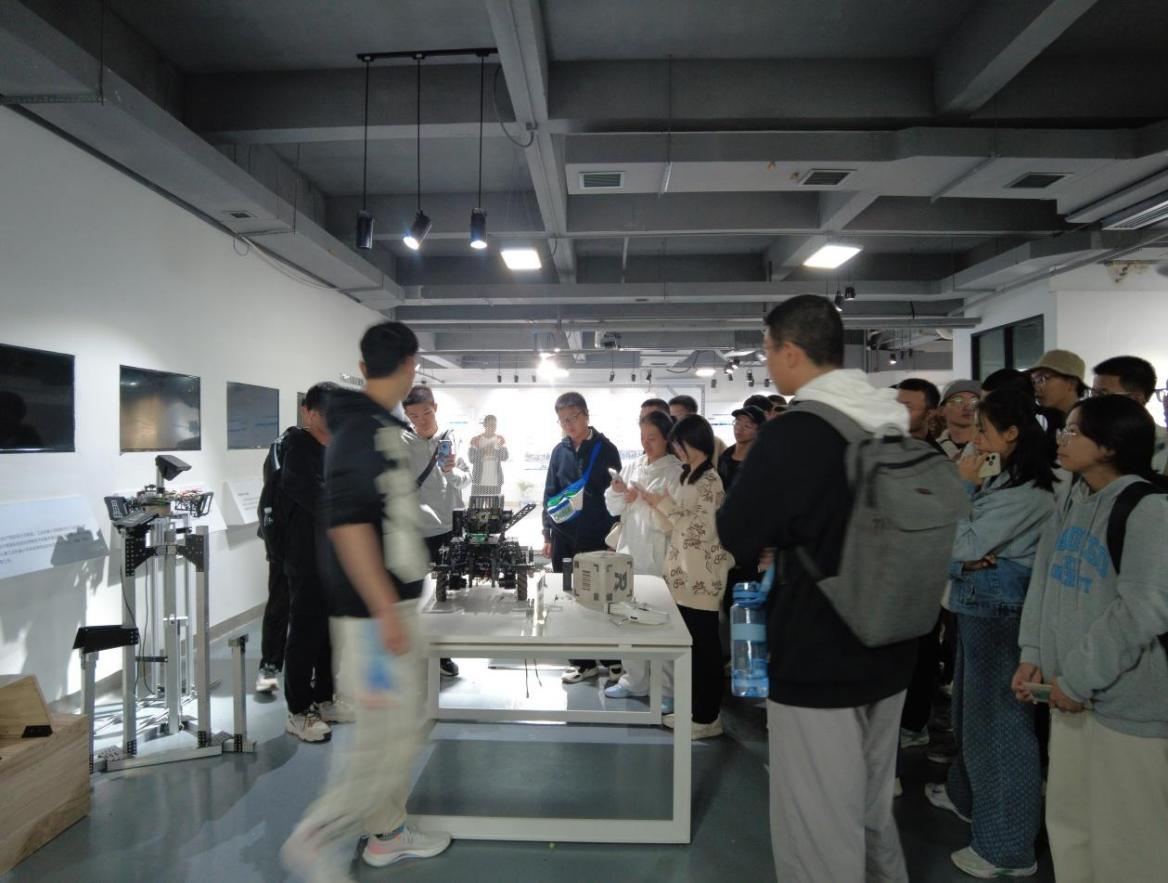 机器人学院在机器人展厅对优秀创新创业项目成果进行实操演练,多维度展现了学院实践教学特色理念和学生创新创业风采,观展学生积极体验机器人操控,现场互动频繁,氛围活跃。