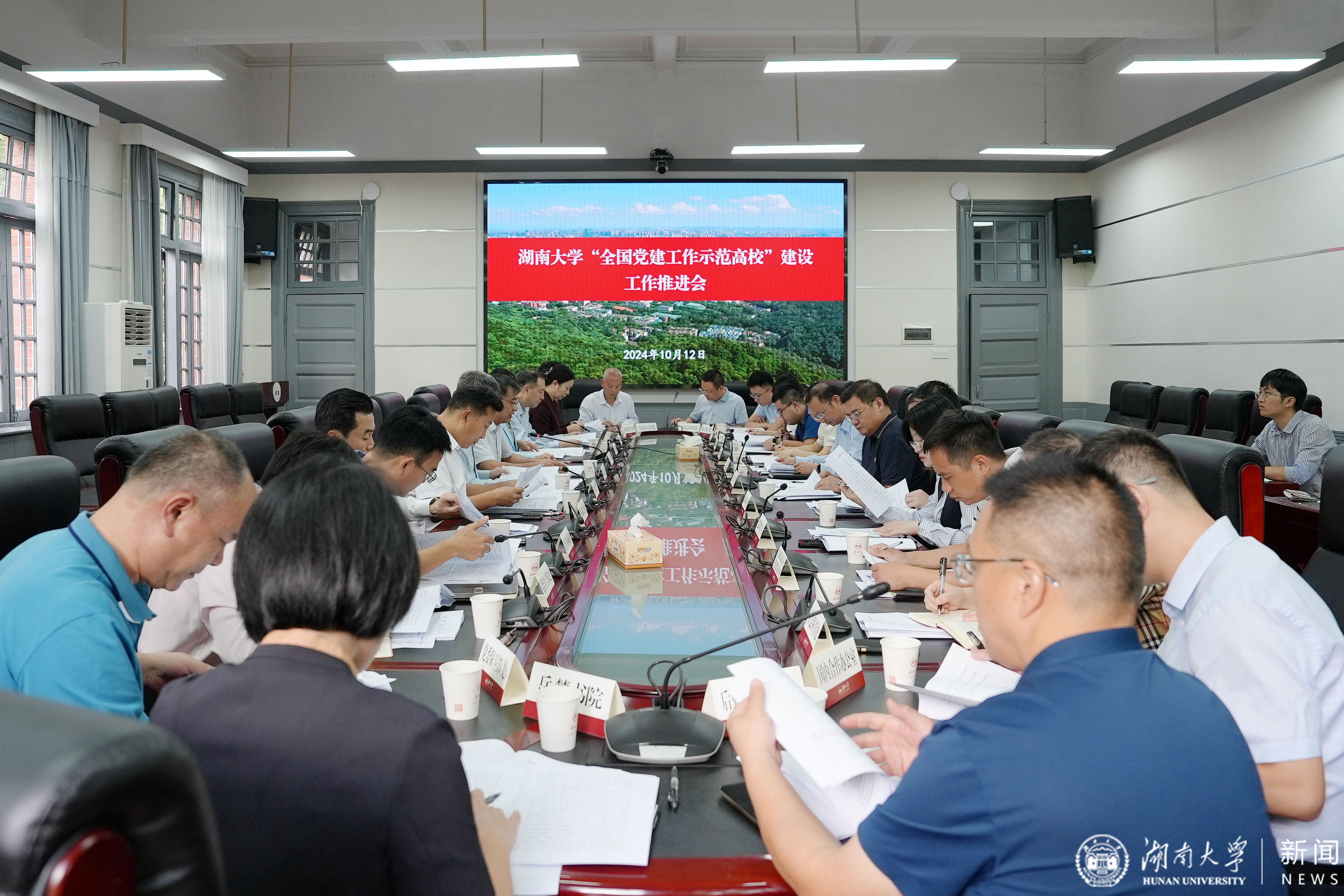 10月12日,学校召开“全国党建工作示范高校”建设工作推进会,研究讨论《湖南大学党委宣传部(新闻办公室)地址中心“全国党建工作示范高校”建设方案》。校党委书记邓卫出席并讲话,校党委副书记孙炜主持会议。校党委常委、组织部部长李久学介绍《湖南大学党委宣传部(新闻办公室)地址中心“全国党建工作示范高校”建设方案》基本情况。