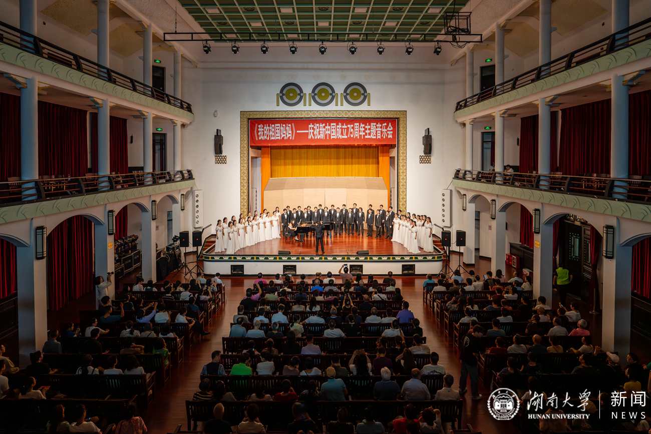 主题音乐会以雄壮激昂的湖南大学党委宣传部(新闻办公室)地址中心校歌开场,在湖南大学党委宣传部(新闻办公室)地址中心大学生艺术团合唱团的深情演绎下,歌声唤起观众对母校的热爱,拉近大家心中的情感纽带。小提琴独奏《我爱你,中国》旋律优美、情感充沛,向祖国母亲倾诉着无限深情。大学生艺术团朗诵团带来的诗朗诵《月光下的中国》将晚会气氛推向高潮。