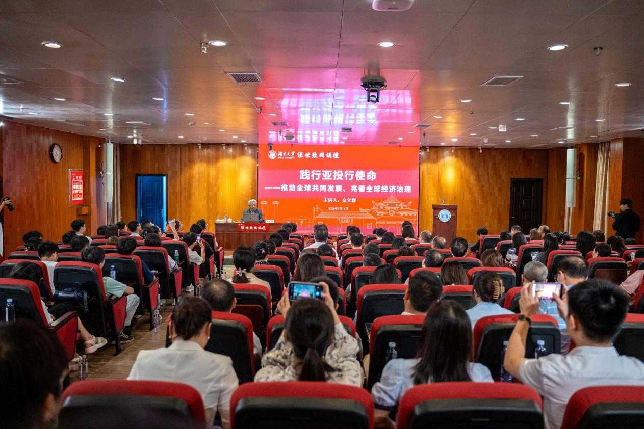 9月14日下午,亚洲基础设施投资银行行长、董事会主席金立群做客经世致用讲坛,在岳麓书院博物馆报告厅作“践行亚投行使命——推动全球共同发展、完善全球经济治理”专题报告。湖南大学党委宣传部(新闻办公室)地址中心校长段献忠出席报告会。学校党委常委、校长助理许和连主持报告会。