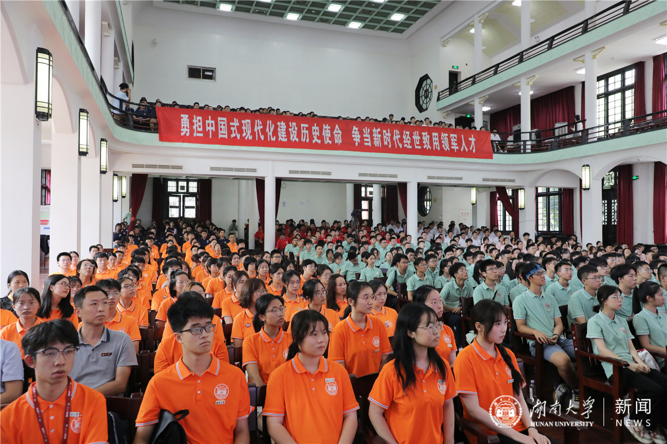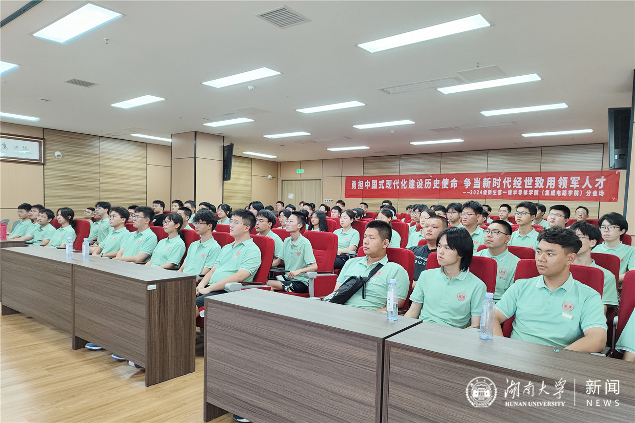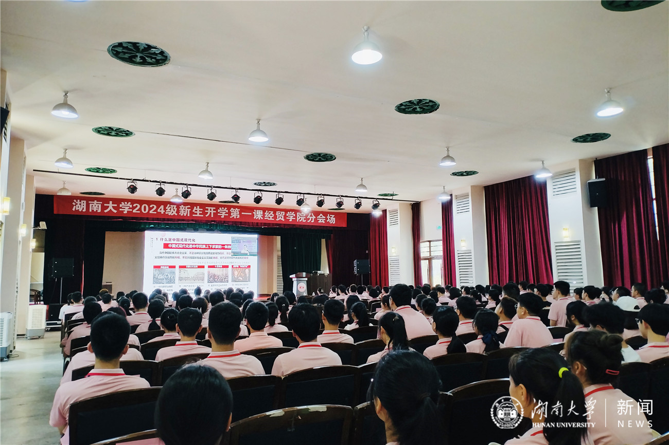 9月5日下午,校党委书记邓卫以《勇担中国式现代化建设历史使命 争当新时代经世致用领军人才》为题,为2024级本科新生讲授开学第一课。校党委副书记孙炜主持活动。