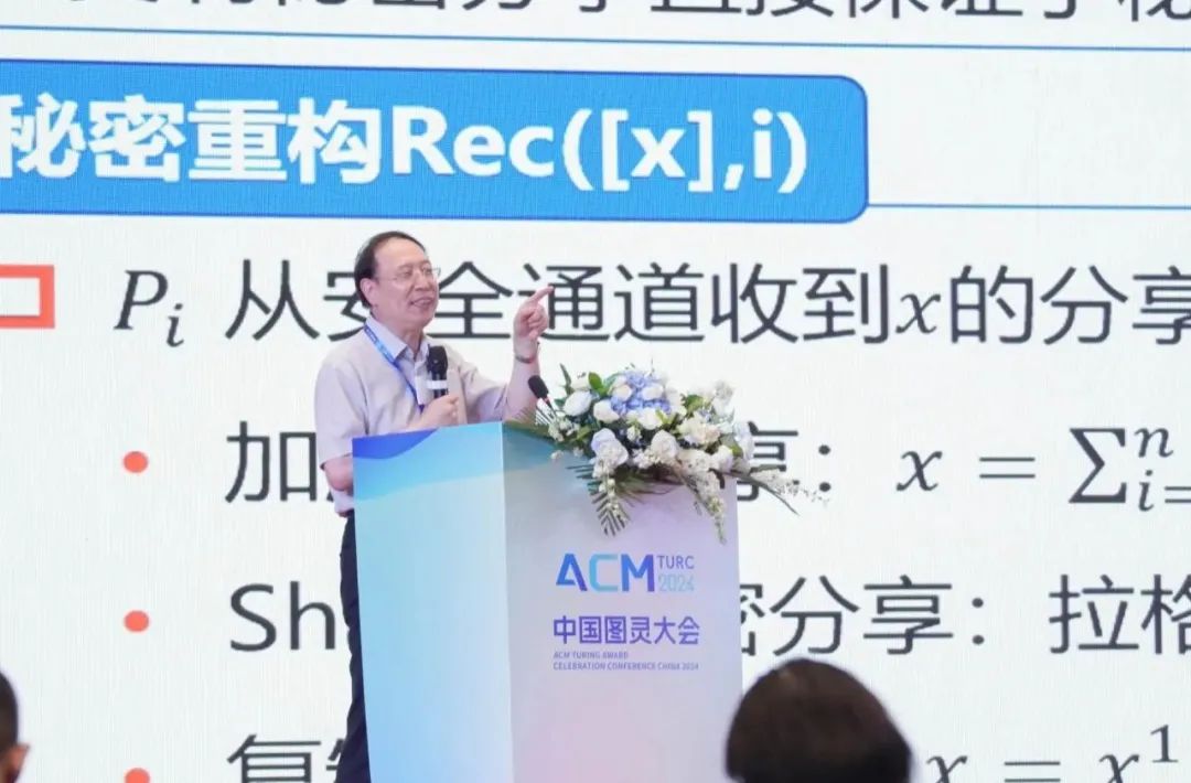 冯登国院士作题为《具体高效的安全多方计算协议:现状与展望》的报告,对安全多方计算的背景与分类进行了介绍,主要详细介绍了基于秘密分享的安全多方计算和基于混淆电路的安全多方计算,同时探讨了隐私保护机器学习应用。