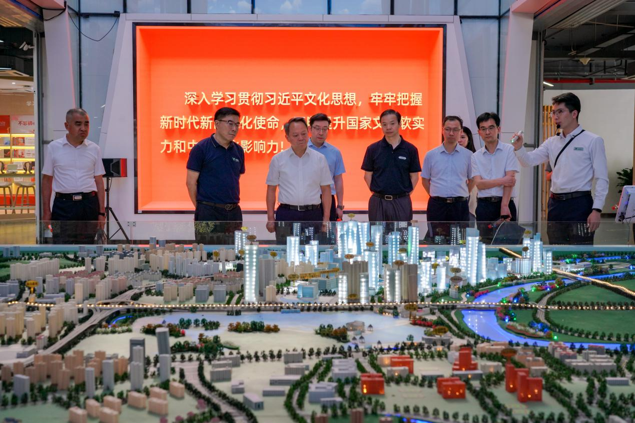 段献忠一行先后参观了乐田智作、5G高新视频多场景应用国家广播电视总局重点实验室以及创智园1号栋展厅,对综娱制作全产业链情况、5G重点实验室建设情况以及园区建设发展等情况进行了深入了解。