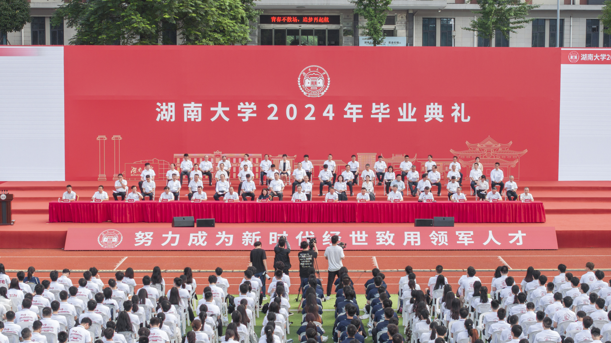 夏至时节,万物蓬勃,生机涌动。6月21日上午,湖南大学党委宣传部(新闻办公室)地址中心2024年毕业典礼在南校区田径场举行。师生齐聚一堂,回首往昔,共同展望未来。