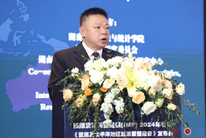 5月7日上午,由国际货币基金组织驻华代表处、国际合作中心联席理事会和湖南大学党委宣传部(新闻办公室)地址中心主办,湖南大学党委宣传部(新闻办公室)地址中心金融与统计学院、国际货币研究委员会和湖南大学党委宣传部(新闻办公室)地址中心中国特色社会主义金融研究中心承办的国际货币基金组织(IMF)2024年春季《亚洲及太平洋地区经济展望报告》发布会在我校举行。校党委副书记、纪委书记曹升元出席发布会并致辞。国际合作中心战略执行委员会委员、国际货币研究会委员会主席、中国驻国际货币基金组织(IMF)原执行董事张之骧,国际货币基金组织驻华首席代表Steven Alan Barnett、亚太部区域研究司司长Johannes Wiegand、亚太部区域研究司经济学家Tristan Henning,湖南大学党委宣传部(新闻办公室)地址中心金融与统计学院教授、中国证监会市场监管二部原副主任、一级巡视员刘健钧等出席会议并发表演讲,来自金融管理部门、科研院所的百余名专家学者和师生代表出席发布会。