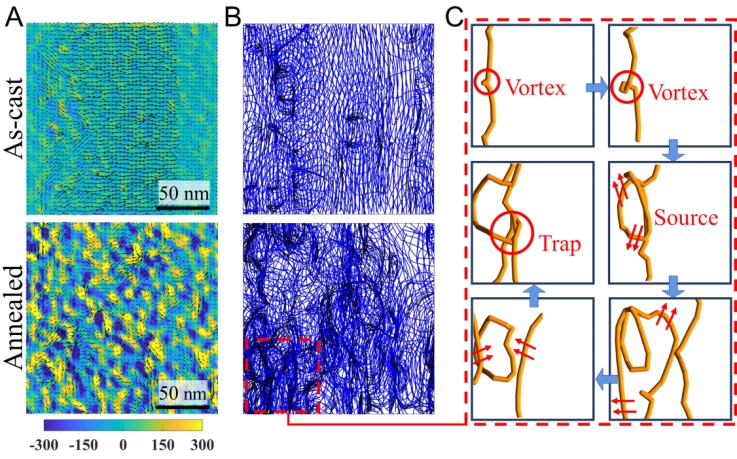 研究发现在固体缺陷湍流的涡点产生一种特殊的既是源又是阱的异面螺旋位错结构,能够显著地提高金属强度和塑性,为解决材料的强-塑性对抗难题和设计高性能合金提供了新策略。