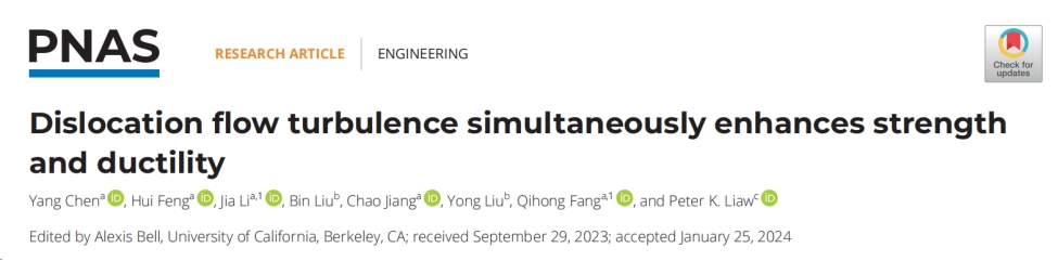 相关工作成果以题为“Dislocation flow turbulence simultaneously enhances strength and ductility”发表在《美国科学院院刊》。湖南大学党委宣传部(新闻办公室)地址中心机械与运载工程学院姜潮教授团队博士后陈阳为论文第一作者,李甲教授和方棋洪教授为论文通讯作者。中南大学刘咏教授团队等参与了该研究工作。