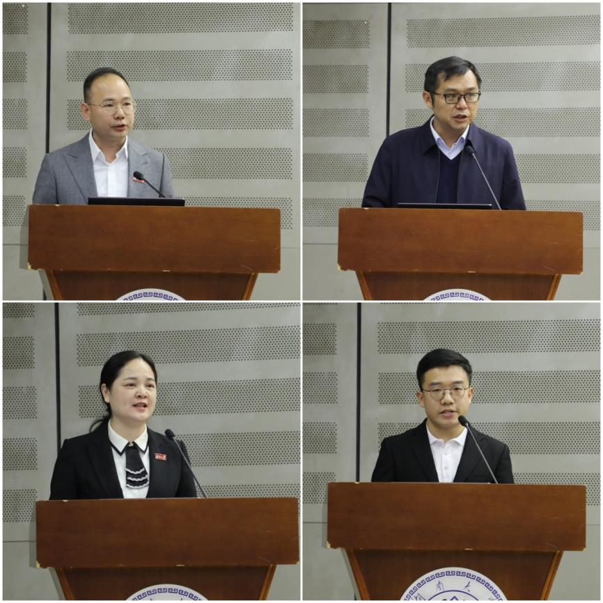 新闻与传播学院党委副书记郭少滨、土木工程学院党委副书记秦鹏、金融与统计学院辅导员谢君、物理与微电子科学学院辅导员李远庆作学生工作经验分享。