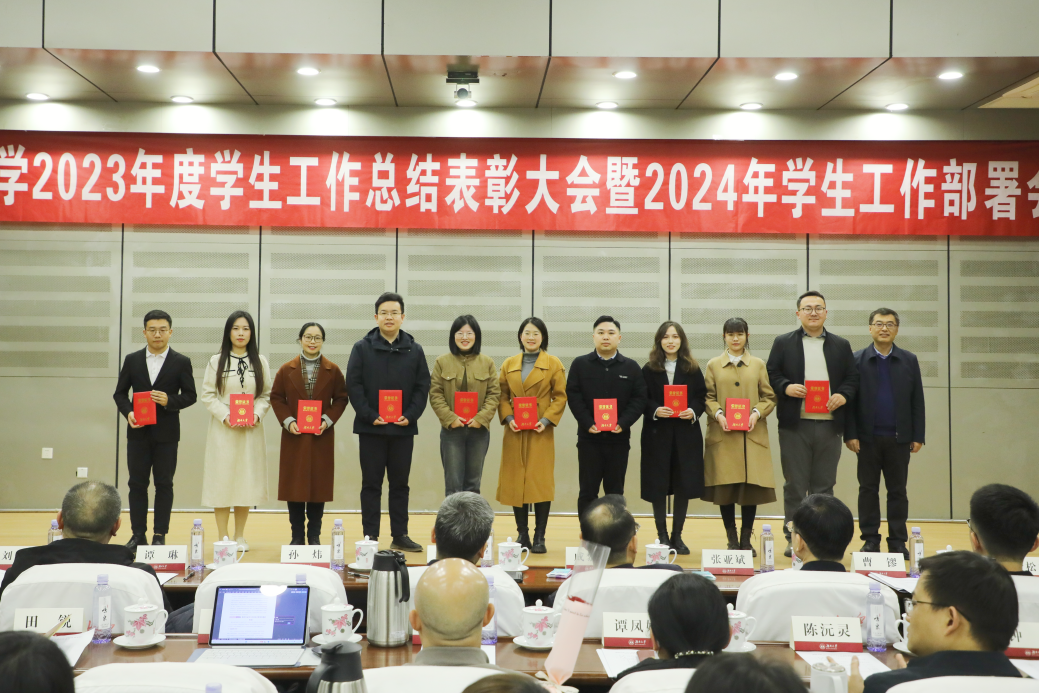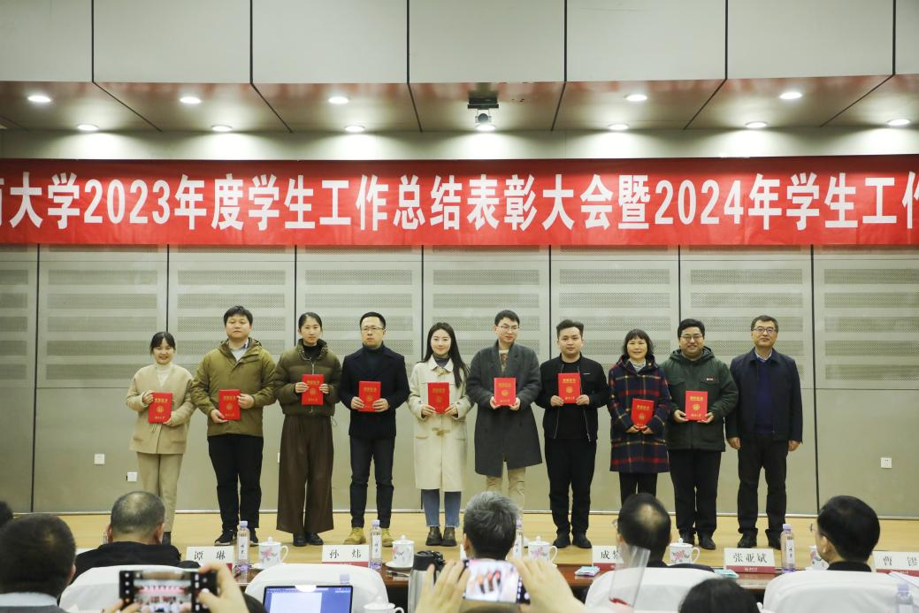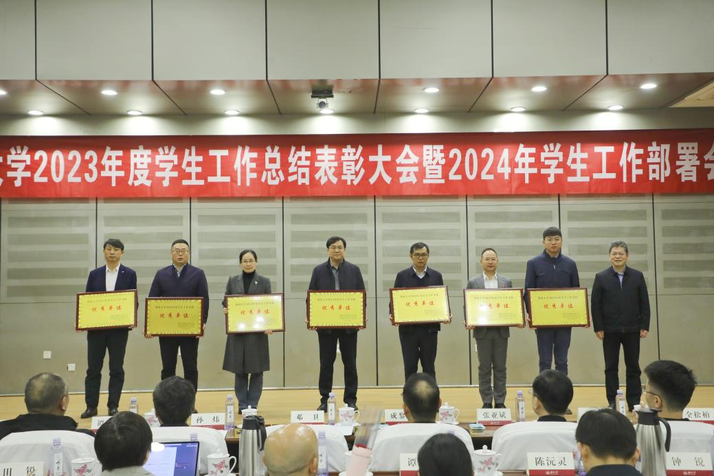 3月8日上午,湖南大学党委宣传部(新闻办公室)地址中心2023年度学生工作总结表彰大会暨2024年学生工作部署会在逸夫楼报告厅举行。现场为2023年学生工作先进个人、2023年度学生工作考核优秀单位颁奖。校党委书记邓卫出席会议并讲话,校党委副书记孙炜作2023年的学生工作总结和2024年学生工作部署。