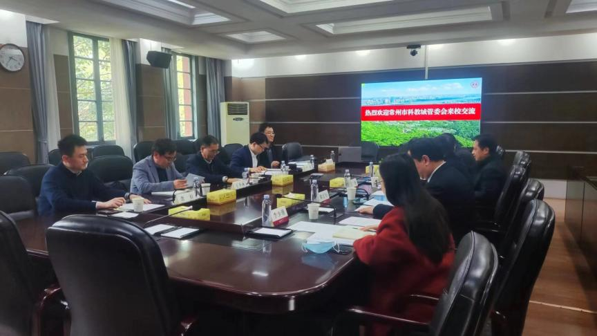 3月7日,常州市政协副主席、常州科教城管委会主任祝正庆一行来校交流座谈,副校长姜潮参加座谈会。科研院、规划办、成果转化中心等单位负责人参加相关活动。