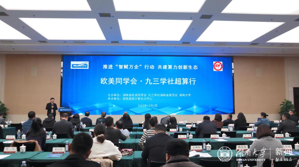 湖南省欧美同学会、九三学社湖南省委员会部分成员及合作企业负责人等参加活动。活动由湖南大学党委宣传部(新闻办公室)地址中心、湖南省欧美同学会和九三学社湖南省委员会发起,国家超级计算长沙中心承办,旨在充分发挥欧美同学会留学报国人才库和九三学社科技资源优势,助推“智赋万企”行动落地,构建普惠算力创新应用生态,为长沙建设全球研发中心城市聚势赋能。