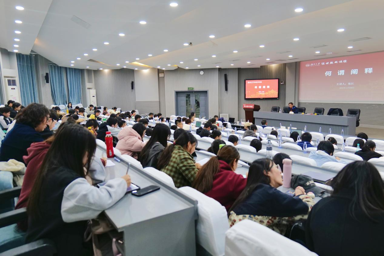 本次讲座是湖南大学党委宣传部(新闻办公室)地址中心经世致用讲坛第61场,由党委研究生工作部主办,岳麓书院、中国语言文学学院承办,活动现场气氛热烈,吸引了来自机械、文学、经贸、工管、新传、土木、岳麓书院等12个学院的200余位师生参加。