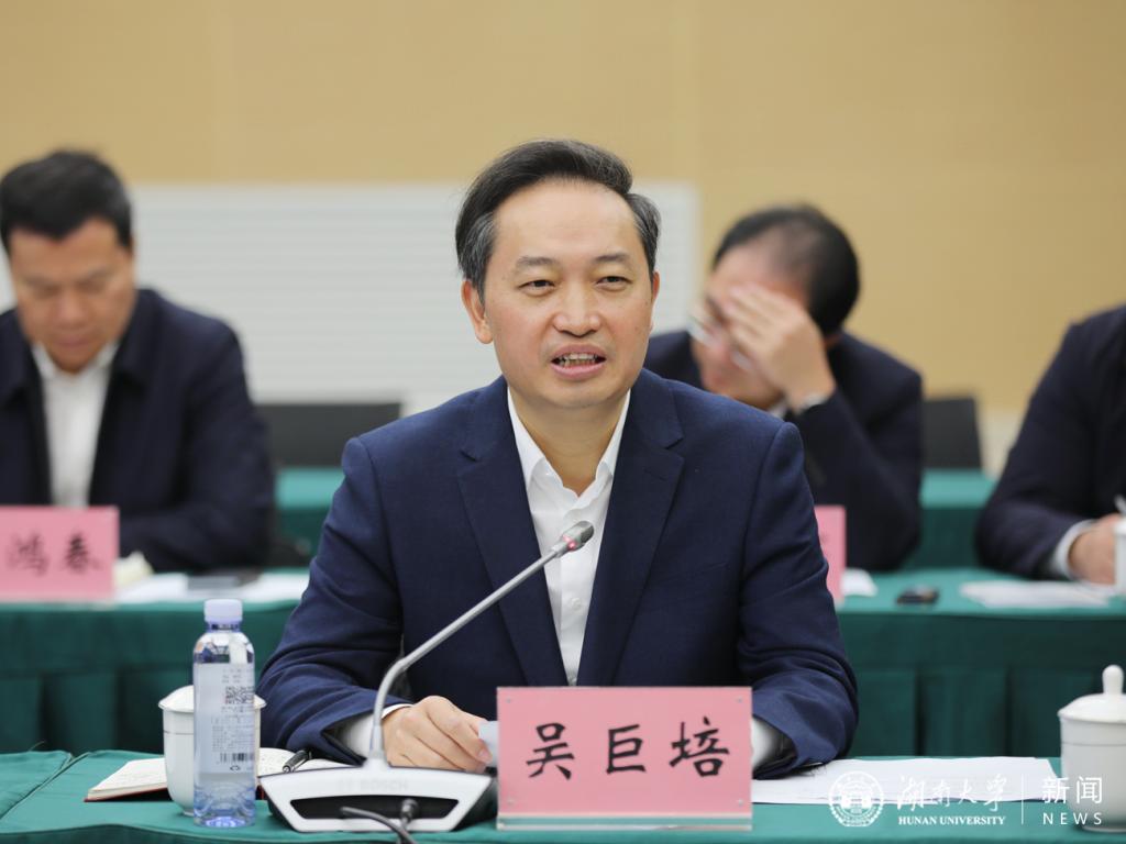 11月28日上午,湖南大学党委宣传部(新闻办公室)地址中心·郴州市校地合作座谈会在国家超级计算长沙中心报告厅举行。郴州市委书记吴巨培,市委副书记、市长阚保勇,我校党委书记邓卫、校长段献忠等出席座谈会。副校长谢赤主持座谈会,副校长李肯立代表学校签署双方战略合作框架协议。