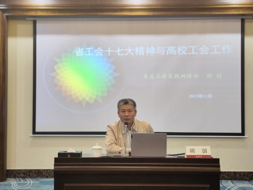 会上,刘湘凌作《中国工会第十八次全体代表大会精神传达》专题报告,胡创作《省工会十七大精神与高校工会工作》专题报告。