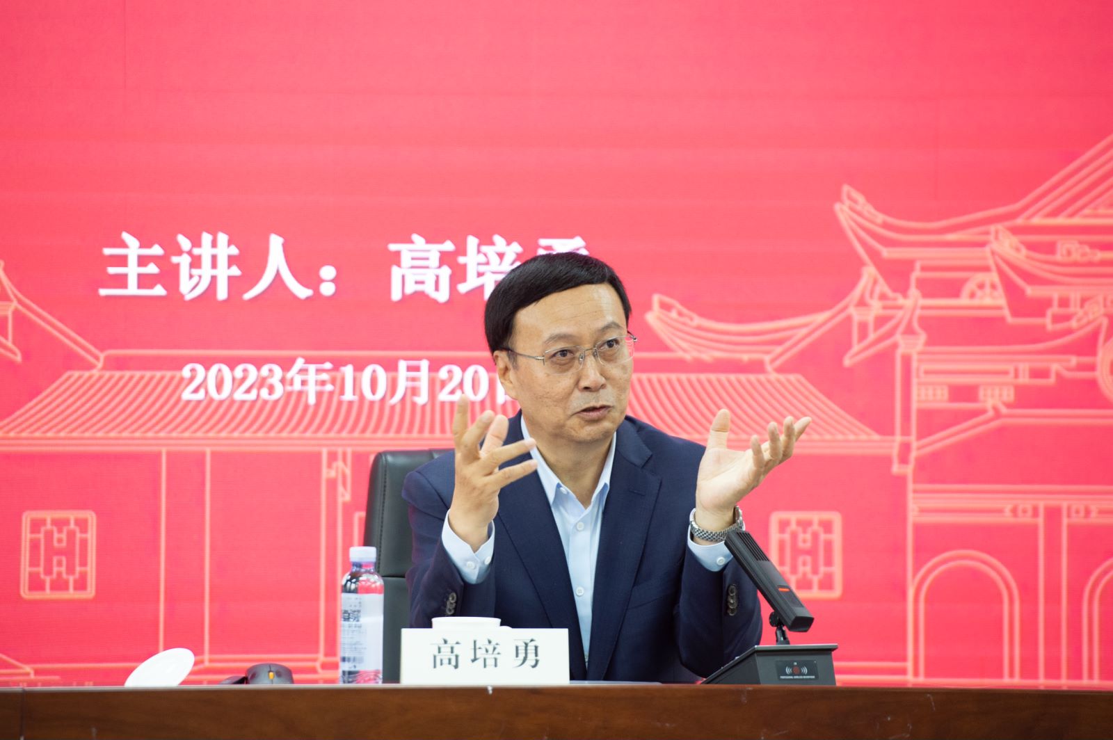 10月20日下午,中国社会科学院学部委员,十三届全国政协经济委员会委员、原中国社会科学院副院长、中国社会科学院大学党委书记高培勇,在财院校区行政楼501会议室作“理解和把握现代税收制度建设”专题报告。校长段献忠出席有关活动,副校长谢赤主持讲座。