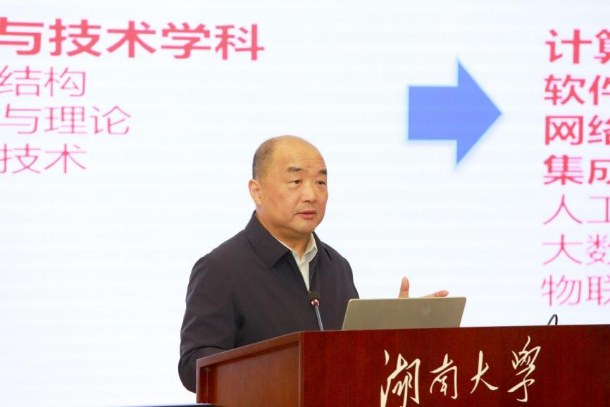 10月19日晚,中国科学院院士、国防科技大学教授王怀民做客第932期岳麓讲坛,以“计算机高等教育的变与不变”为题作报告。副校长李树涛、李肯立出席。