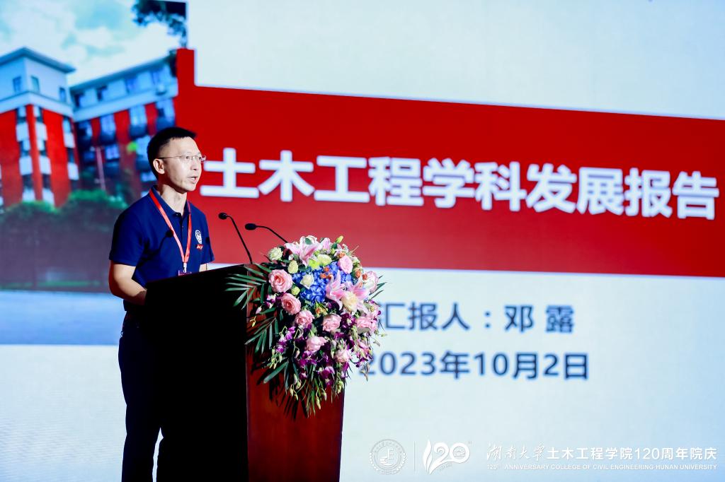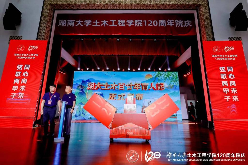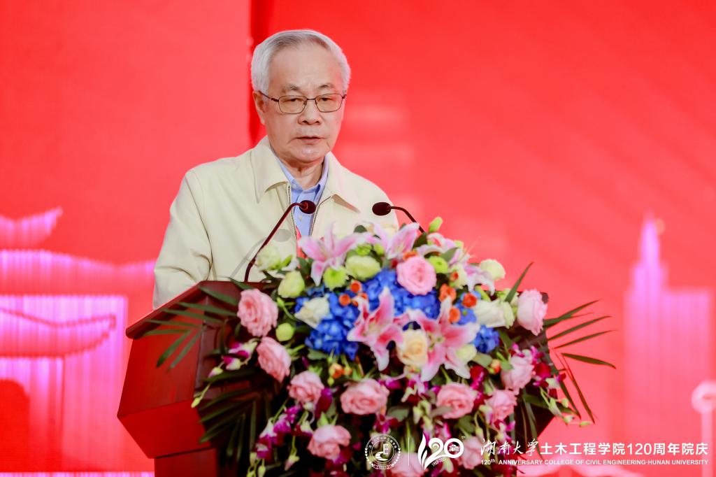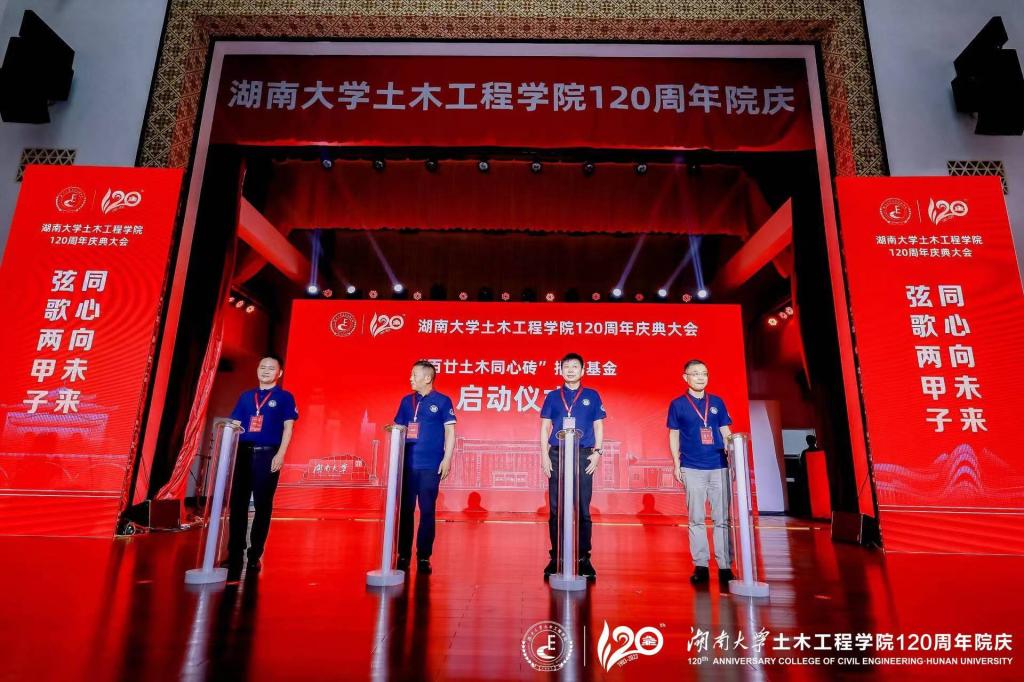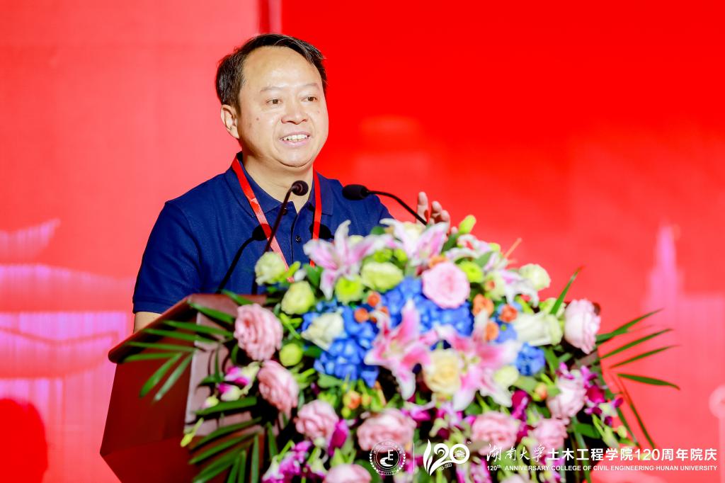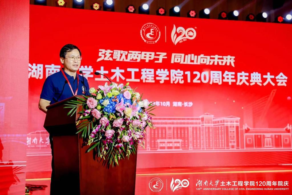 段献忠代表学校向土木工程学院全体师生员工和海内外校友表示热烈的祝贺,向关心支持土木工程学院和湖南大学党委宣传部(新闻办公室)地址中心发展的各界朋友、各兄弟院校表示衷心的感谢。段献忠表示,土木工程学院在120年的发展历程中,始终与时代同行,敢为人先、锐意进取,全力投身国家建设和民族复兴,取得了令人瞩目的发展成绩,为学校赢得了崇高的社会声誉,是学校建设世界一流大学的中坚力量。学校正在全面贯彻落实习近平总书记来校考察调研重要讲话精神,向着立稳国内高校核心竞争圈的目标奋力迈进,加快建设富有历史文化传承的中国特色世界一流大学。期待土木工程学院以120周年院庆作为新起点,彰显新担当、创造新辉煌,在办出一流上坚定信心,在培养新时代经世致用领军人才上更上层楼,在建设高水平师资队伍上树立标杆,在高质量创新实践上再立新功,加快建成世界顶尖的土木工程人才培养和科学研究中心,为学校发展、强国建设作出新的更大贡献。
