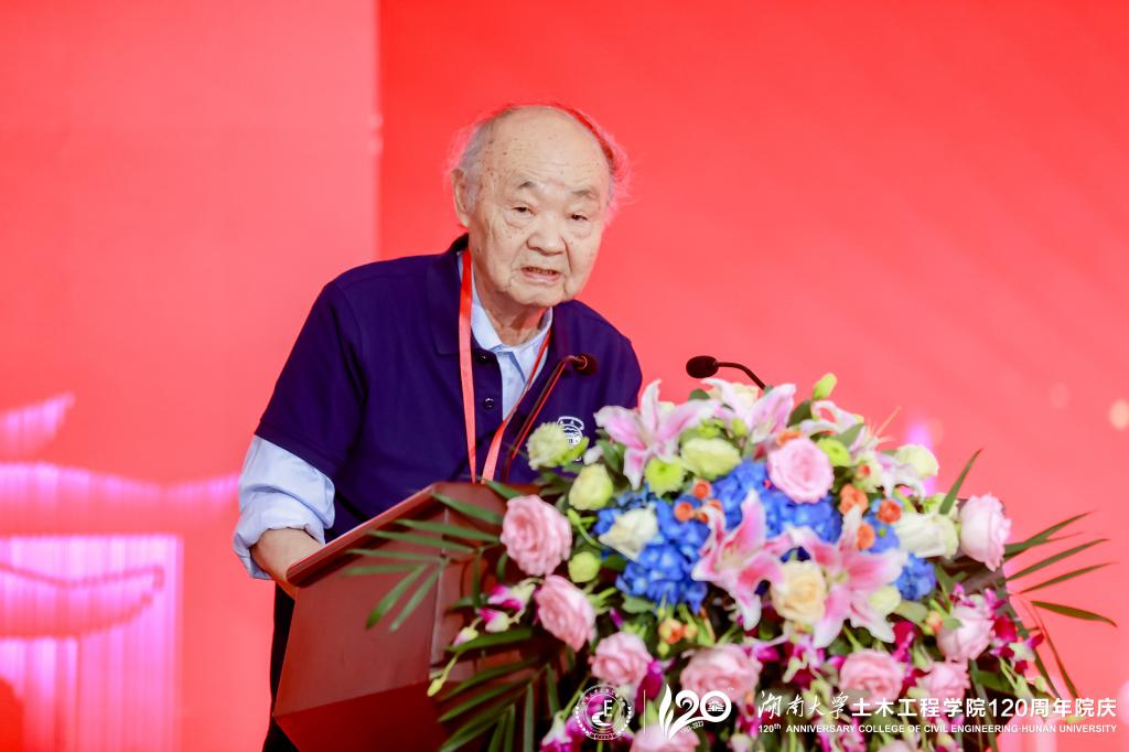 1954级校友代表、中国工程院院士马克俭发言。他表示,今年是他从湖大土木院毕业的第65个年头,无论身处何地,每获悉母校、母院的发展和进步,都由衷感到振奋和欣慰。百年湖大土木,是时代担当的敢为者、守正创新的善为者,更将是敢于突破的有为者,相信学院在新的历史起点上,结合国家、地方重大需求,定将为实现高水平科技自立自强、持续探索新型人才培养模式作出新的重要贡献。