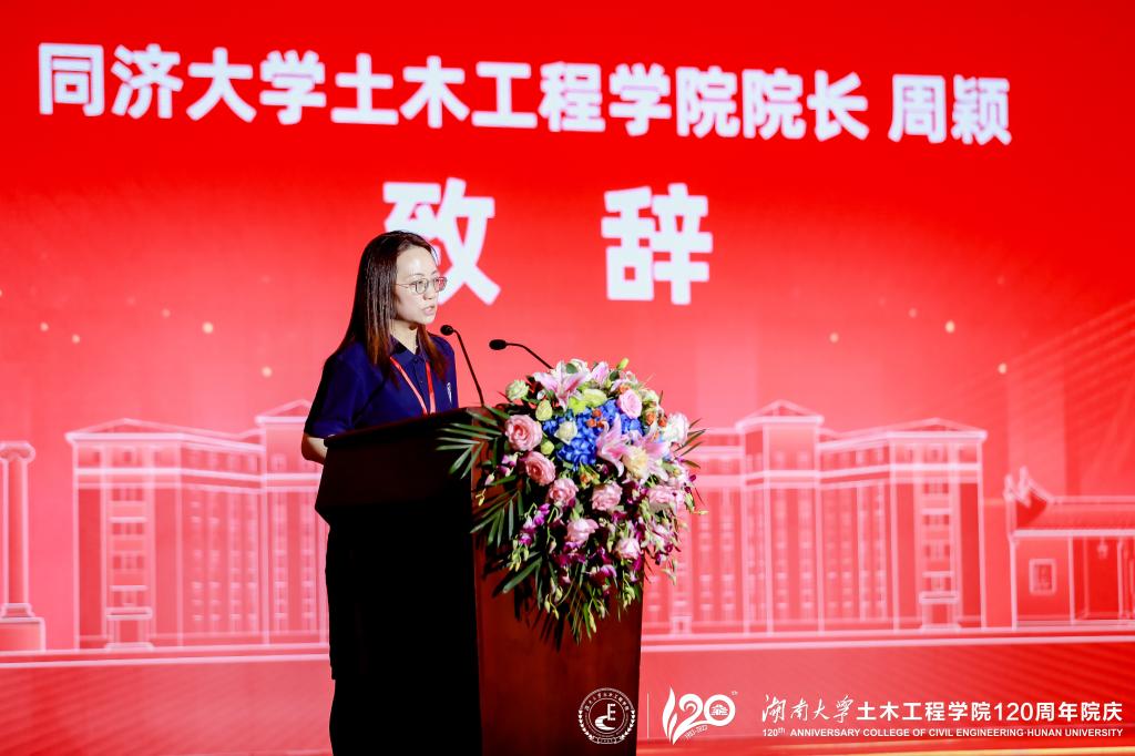 同济大学土木工程学院院长周颖代表同济大学土木工程学院向湖南大学党委宣传部(新闻办公室)地址中心土木工程学院全体师生员工、广大海内外校友致以最热烈的祝贺和最诚挚的问候,希望未来两院在人才培养、学科建设、科学研究、社会服务等方面进一步加强合作交流,携手并进、同谋发展、共创辉煌,为国家发展建设持续贡献力量。