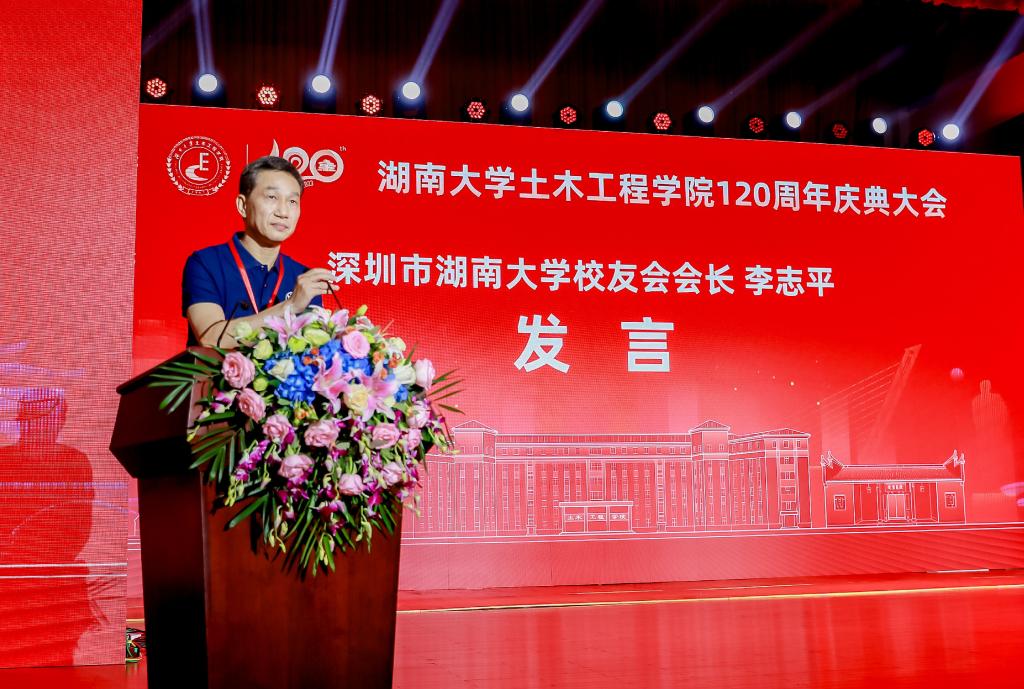 1980级校友代表、深圳市湖南大学党委宣传部(新闻办公室)地址中心校友会会长李志平发言。他表示,湖南大学党委宣传部(新闻办公室)地址中心深圳校友会一直积极与学院保持交流互动,协助学院做了一些力所能及的工作,之后也将联动各个校友会及各分支机构,为学校、学院的建设贡献力量。他呼吁校友们用实际行动参与和支持学院的建设,共同为学院的发展添砖加瓦,群策群力。