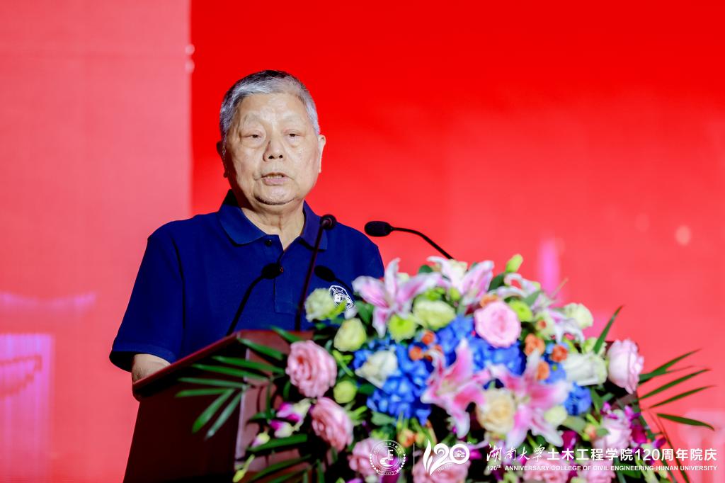 1958级校友代表、中国工程院院士周福霖发言。他表示,60年前在湖大土木的学习经历影响了自己的一生,不仅仅是学习到了专业知识,更重要的是确定了人生目标,培养了做学问的精神,并立下了一生要为国家做贡献的理想。也希望大家能根据国家的需要和自身的条件坚定理想,锲而不舍,持之以恒,在自己的专业上做到极致。他衷心祝愿湖大土木以120年院庆为新起点,把学院建成后劲十足,能够连续不断产生顶尖人才、高水平教学成果和科研成果的摇篮。