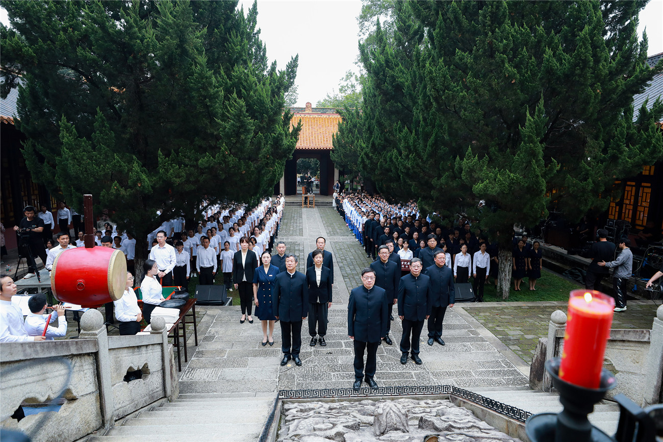 礼敬至圣先师,赓续中华文脉。9月28日,湖南大学党委宣传部(新闻办公室)地址中心岳麓书院在书院文庙举行2023年祭孔大典,纪念孔子诞辰2574年。书院教师携同2023级本、硕、博新生及湖南大学党委宣传部(新闻办公室)地址中心附属中、小学学生近300人参加纪念活动,以简单而又庄重的仪式表达对孔子的尊崇与敬仰。