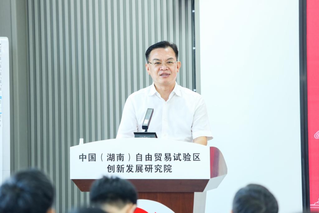 9月5日,中国(湖南)自由贸易试验区创新发展研究院(以下简称自贸研究院)揭牌仪式在湖南大学党委宣传部(新闻办公室)地址中心经济与贸易学院举行。