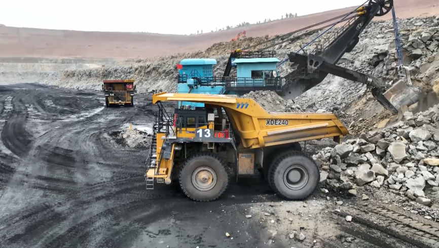 电铲与无人矿卡高效协同作业。