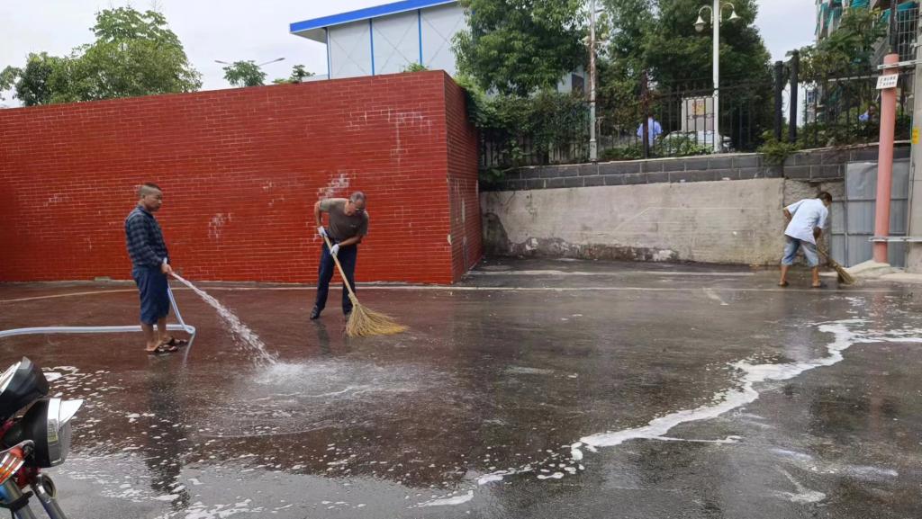 公寓办环绿组织清洗地面