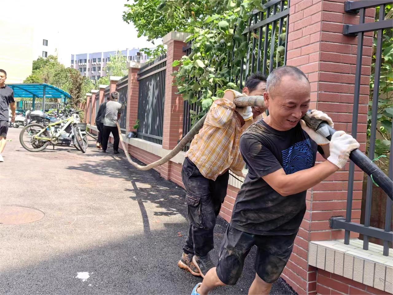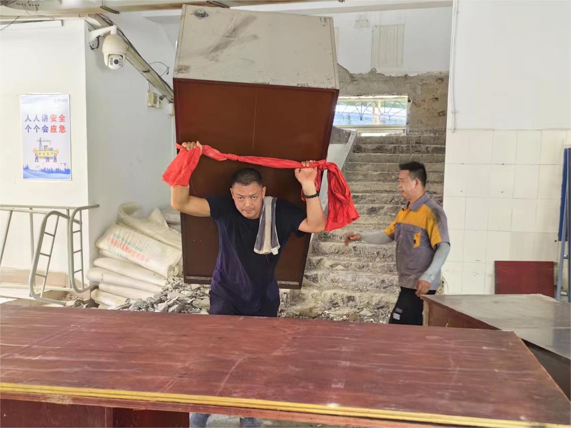 然而,炎热的暑假恰是基建项目施工的黄金期。面对工期紧张、高温酷暑等困难,基建工人积极奋战,为了工程项目如期完工全力以赴。从宿舍维修到食堂改造,从教学楼到操场,各项修缮工程有条不紊进行。物业、环卫、食堂、水电、维修、接待、通勤等保障环节,后勤工作人员坚守一线,以点滴之举,抵抗炎炎夏日,维护校园环境,服务学校师生。