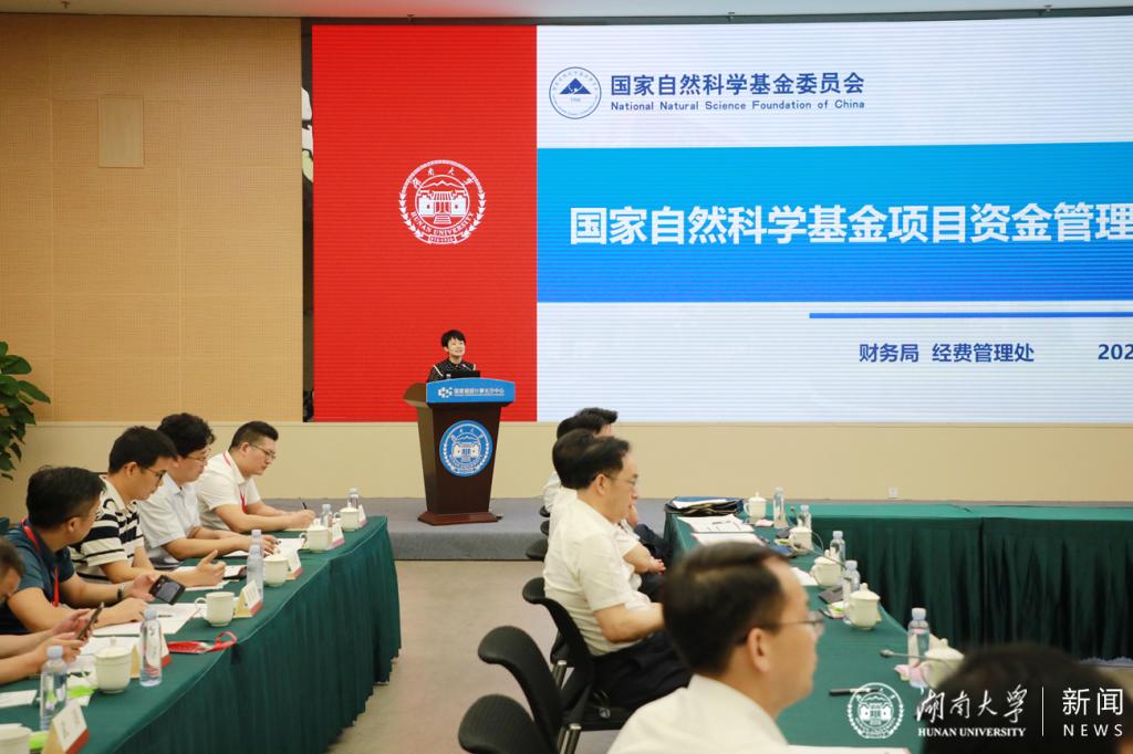 7月13日上午,国家自然科学基金项目资金管理政策湖南地区落实情况研讨会在湖南大学党委宣传部(新闻办公室)地址中心召开。国家自然科学基金委员会党组成员高瑞平,湖南省科学技术厅党组成员、副厅长、一级巡视员鲁先华,湖南大学党委宣传部(新闻办公室)地址中心校长段献忠,副校长李肯立出席会议。国家自然科学基金委员会财务局局长张香平主持研讨会。来自湖南地区 18 家依托单位的科研处、财务处负责人参加研讨会。