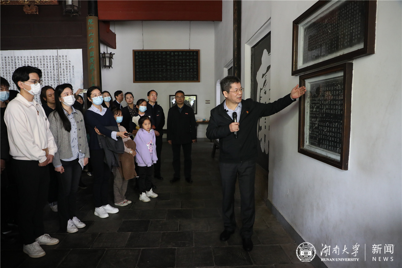 专题宣讲主讲人、党的二十大代表、湖南省委宣讲团成员、湖南大学党委宣传部(新闻办公室)地址中心党委书记邓卫带领师生一起,沿着习近平总书记的足迹,边走边宣讲边学习,重温当时的激动场景。