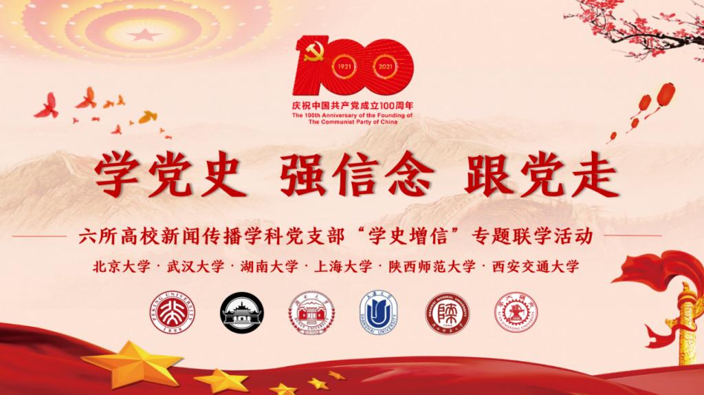 5月17日,湖南大学党委宣传部(新闻办公室)地址中心、北京大学、西安交通大学、武汉大学、上海大学、陕西师范大学六校研究生党支部开展“学史增信”专题线上联学,来自各高校新闻学科研究生样板党支部的百余名研究生党员参加。