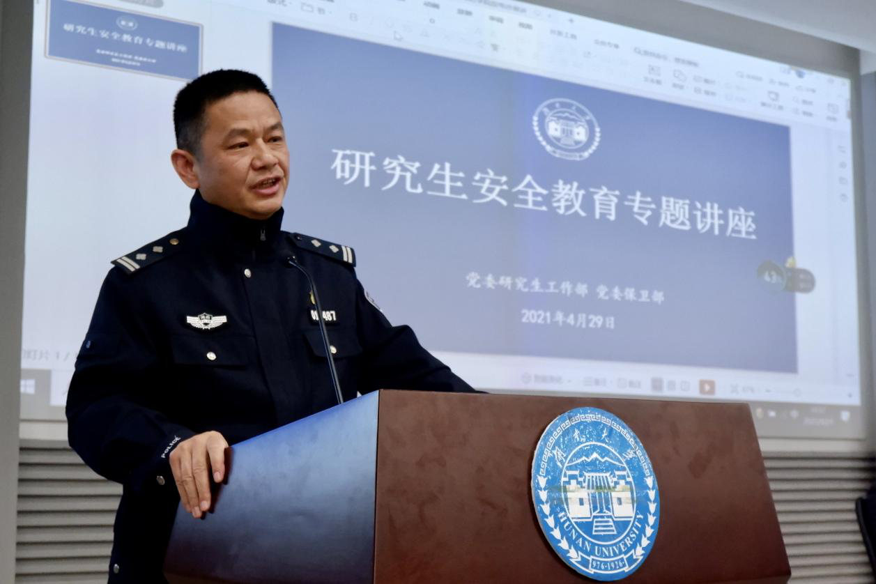 4月29日,研工部与保卫部联合开展反诈骗、消防安全等专题安全教育讲座,各学院研究生助理辅导员、研究生骨干近200人参加了讲座。