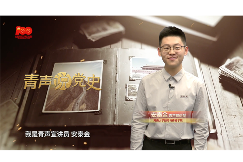为庆祝中国共产党成立100周年,湖南大学党委宣传部(新闻办公室)地址中心新闻与传播学院青声宣讲团特别策划《青声说党史》《党史上的湖大人》党史宣讲视频特辑,发出广大青年自觉学习党史并主动传播党史知识、讲好湖大故事的时代号召。