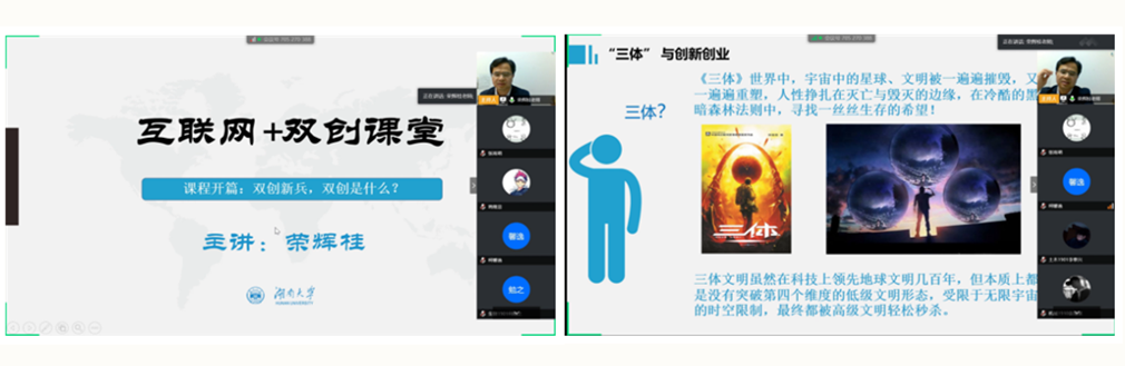为推进软件工程专业国家级一流专业建设,荣辉桂承担了面向全校20多个专业开设的《互联网+双创》通识课,课堂还吸引了一些旁听学生,实际选课人数58人,首次在线上课人数为100人左右。