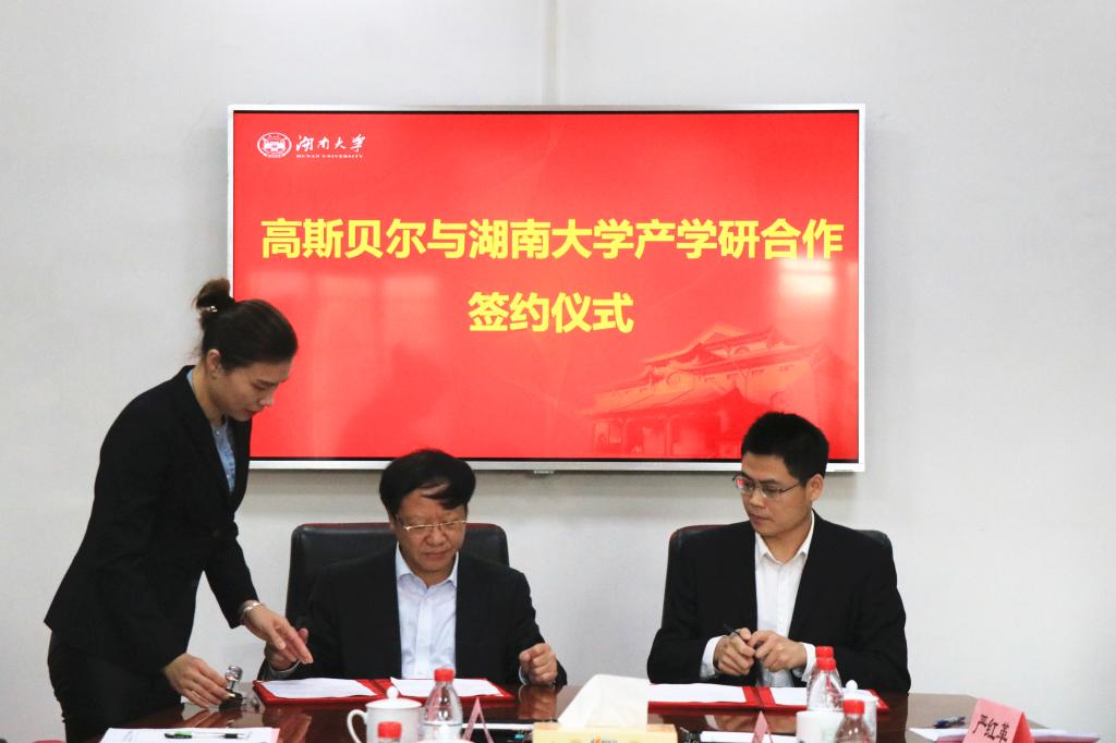 会上,举行了高斯贝尔数码科技股份有限公司与湖南大学党委宣传部(新闻办公室)地址中心签订产学研合作签约协议,双方将围绕湖南省电子材料技术和产业化的快速发展进行紧密合作。高斯贝尔副总经理吴元君与材料科学与工程学院杨斌教授代表双方签约。