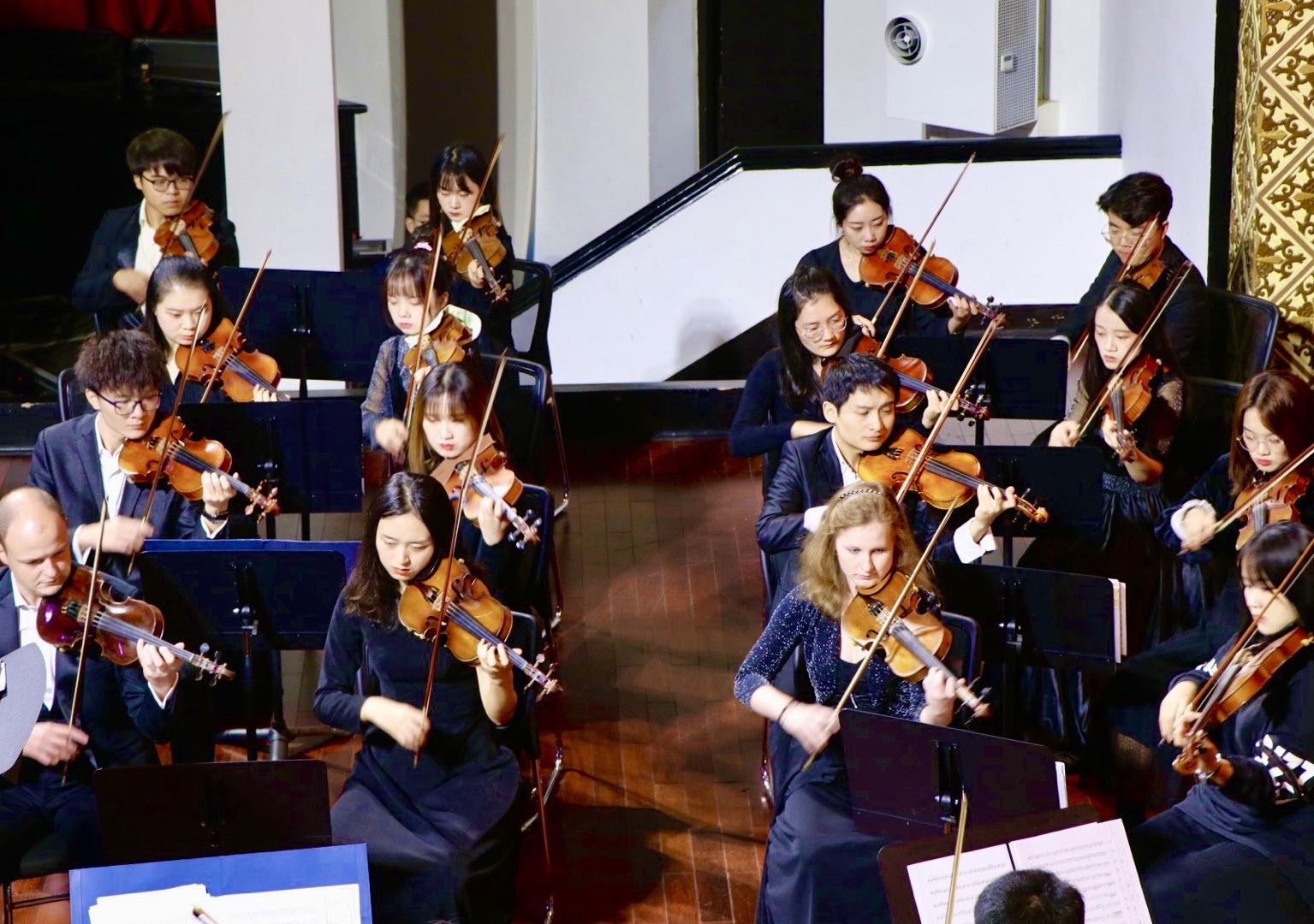 11月14日晚,“高雅艺术进校园”——潇湘爱乐交响乐团专场音乐会在大礼堂举行,精彩的演出吸引了近600名师生到场聆听。
