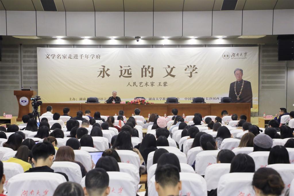 10月26日上午,我校“文学名家走进千年学府”第三季在逸夫楼报告厅开讲,“人民艺术家”王蒙畅谈“永远的文学”。中南出版传媒集团董事长龚曙光、湖南省新华书店副总经理沈剑锋,校党委书记邓卫等出席。