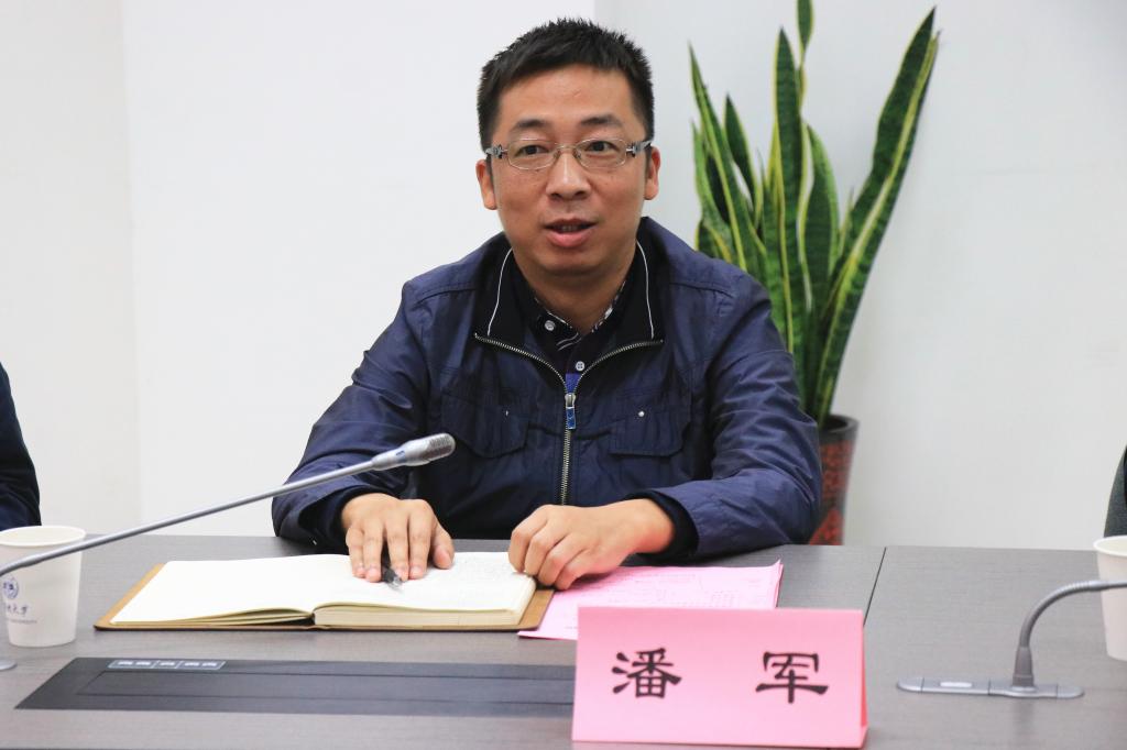 省教育厅办公室主任潘军与校党委宣传部交流。