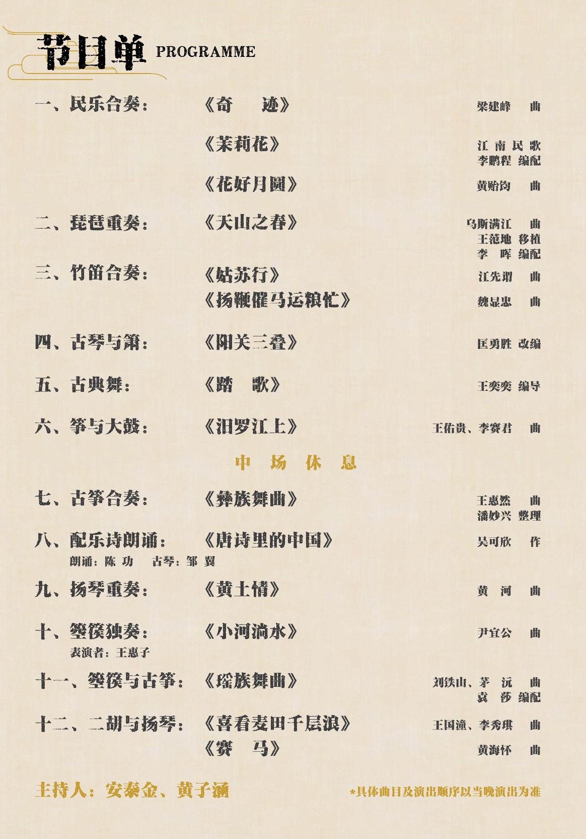 乐团定期举办专场音乐会,参加校内外相关演出,发挥“以美育人”的独特作用,全力为我校师生搭建一个高水准的艺术欣赏、艺术实践的平台,打造出“根植千年庭院、传播民族艺术”的校园文化名片。