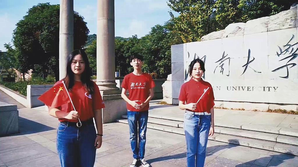 “我的祖国,高山巍峨,雄伟的山峰俯瞰历史的风狂雨落……”中华人民共和国70周年华诞之际,新闻传播与影视艺术学院学子在红楼、东方红广场、校牌、湘江边等,深情朗诵爱国诗《我的祖国》,为祖国母亲献上最美好的祝福。