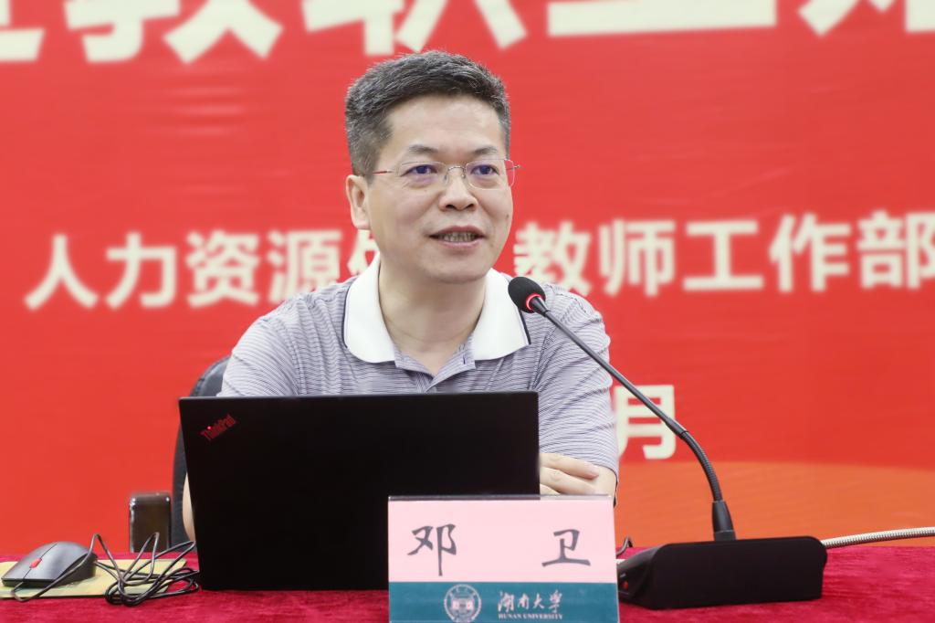 校党委书记邓卫为新进教职工讲课。