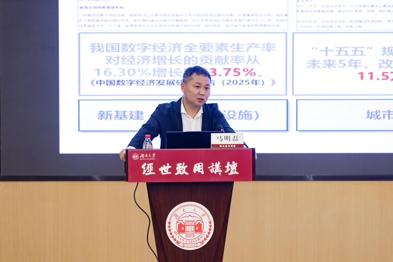 4月14日下午,中建八局工程研究院院长、正高级工程师马明磊做客经世致用讲坛“创业先锋专场”,于综合楼108报告厅作“数智赋能·新质筑基——智能建造赋能土木工程新质生产力发展与产业变革”主题报告。本场报告会为“校庆系列学术报告”之一。