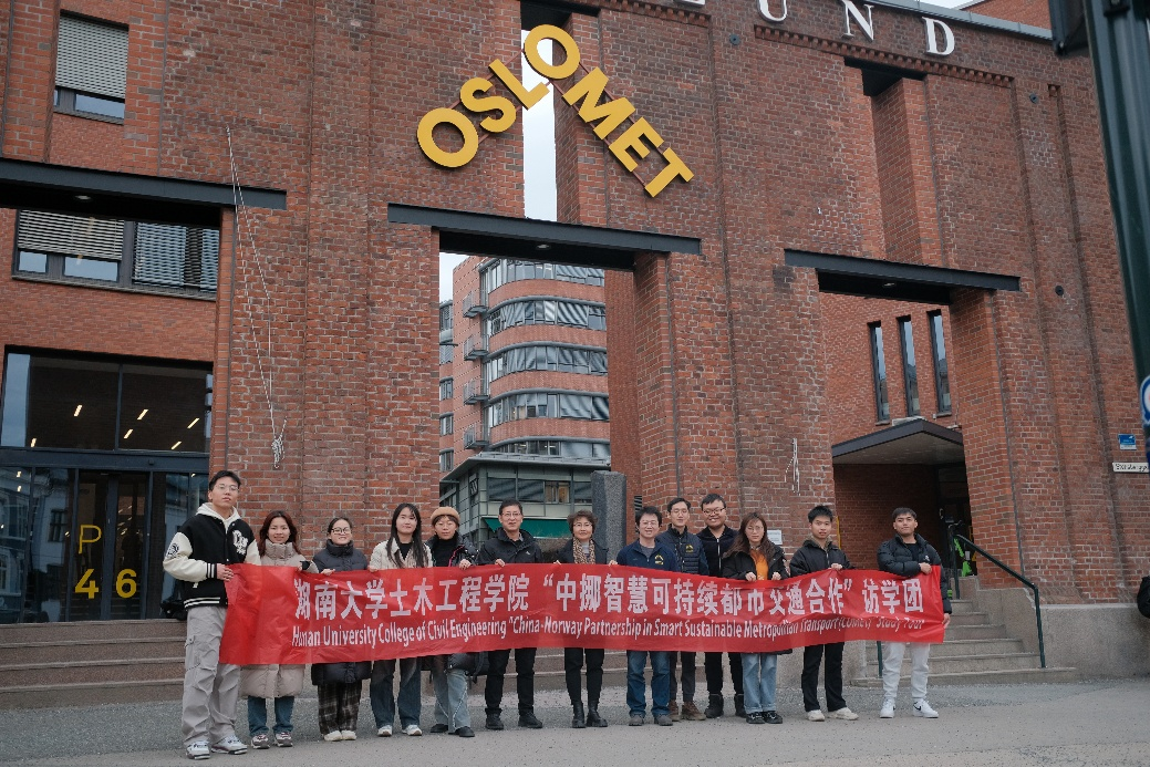 4月11日,挪威奥斯陆城市大学(Oslo Metropolitan University)师生一行7人回访土木工程学院,进行了为期10天的学术访问与文化交流。双方就智能交通系统建设、可持续道路规划、人才培养合作等方面内容展开研讨,并前往长沙市轨道交通集团、广汽埃安长沙工厂等进行实地调研。