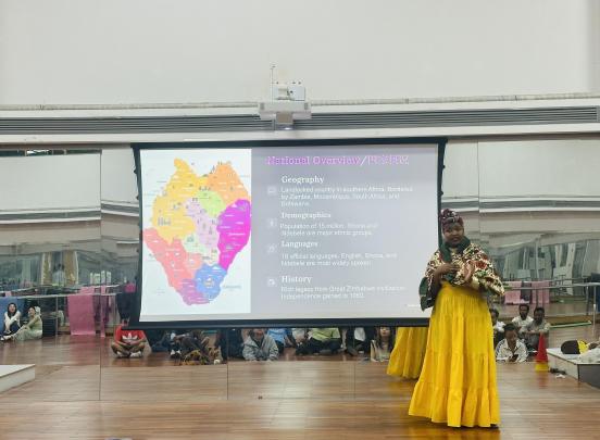 来自泰国、坦桑尼亚、毛里塔尼亚、津巴布韦、莫桑比克和巴拿马的同学在“外国文化分享”环节展示了各自国家的传统舞蹈、节庆习俗和音乐艺术等。